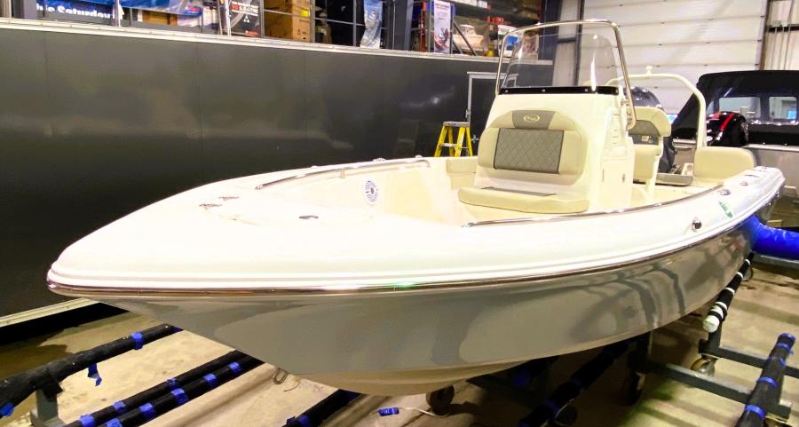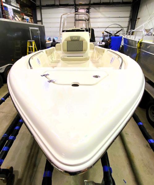 The family oriented center console with a focus on water sports such as skiing, tubing, camping, or just cruising the waterways. This is a family-oriented center console with less emphasis on hard core fishing and more on the water sports many families enjoy, such as skiing, tubing, camping, or just cruising on the waterway. It features more seating, cup holders, and storage to accommodate all family members, but we never forget the fishermen. It also includes molded-in rod racks and a generous live well. The bench seat in the rear features removable cushions to convert it to a nice fishing deck as well.